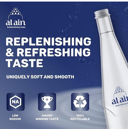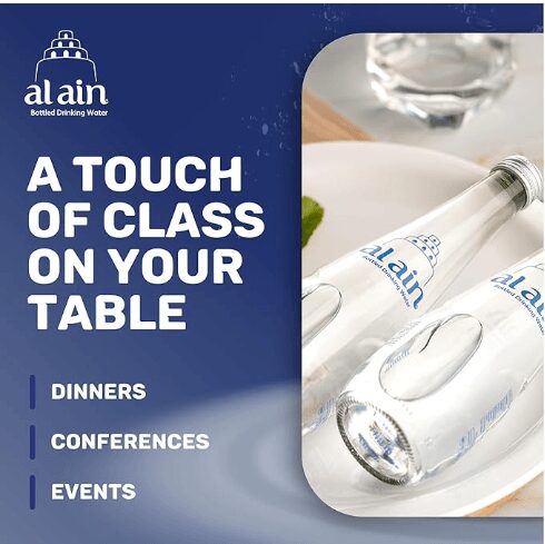 TOUCH OF CLASS: Add a touch of class to your tables with Al Ain Glass Water Bottles, whether you have a dinner, a professional event or a conference, Al Ain Water glass bottle design offers a unique composition making it an irresistible choice