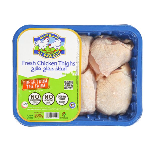 Fresh chicken thighs with skin from cage-free chickens raised on certified local farms. Fed only 100% natural feed and free from antibiotics and artificial additives, offering rich flavour and moisture retention during cooking.