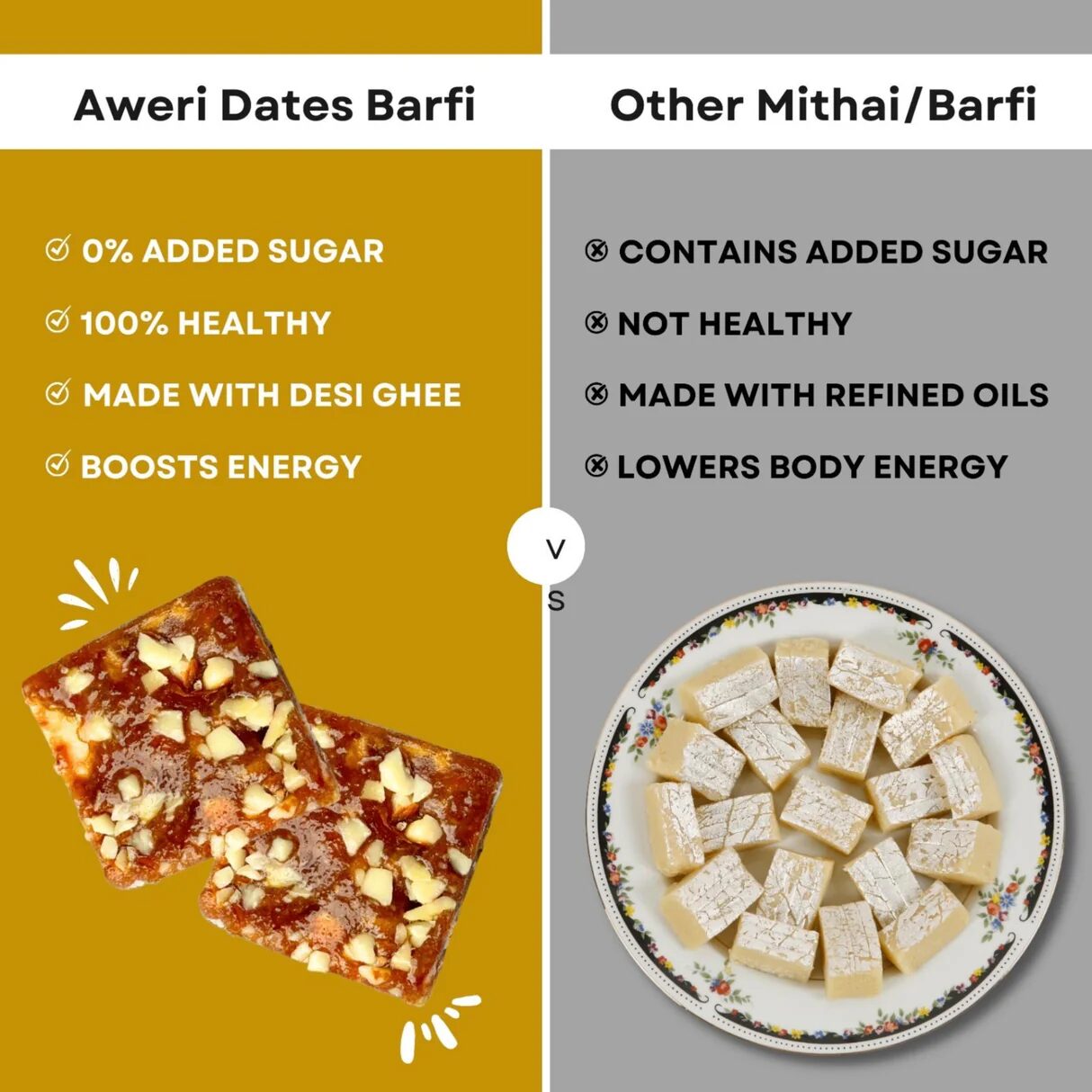 “Our Dates Barfi Bite Combo is the perfect guilt-free indulgence for your everyday snacking needs. Packed with natural goodness and zero added sugar, these bites are not just delicious but also loaded with iron and fiber to keep you energized and nourished throughout the day.