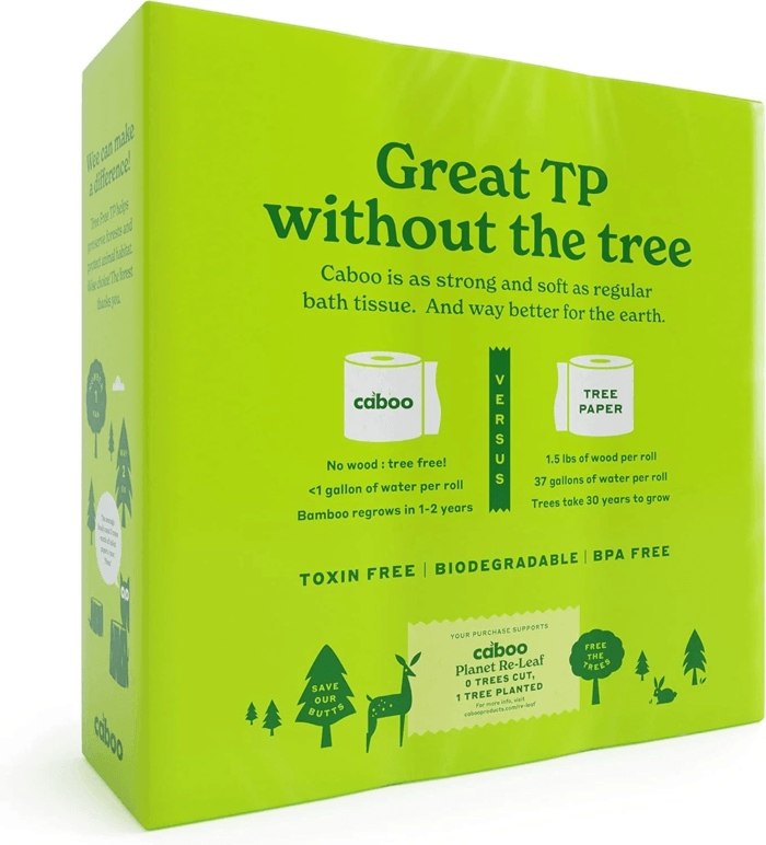 Caboo’s Tree Free Bath Tissue 9-Pack 300 Sheet offers eco-conscious luxury for your bathroom. Crafted from bamboo and sugarcane fibers, it’s soft, strong, and sustainable. Elevate your daily routine with Caboo’s environmentally friendly toilet paper!