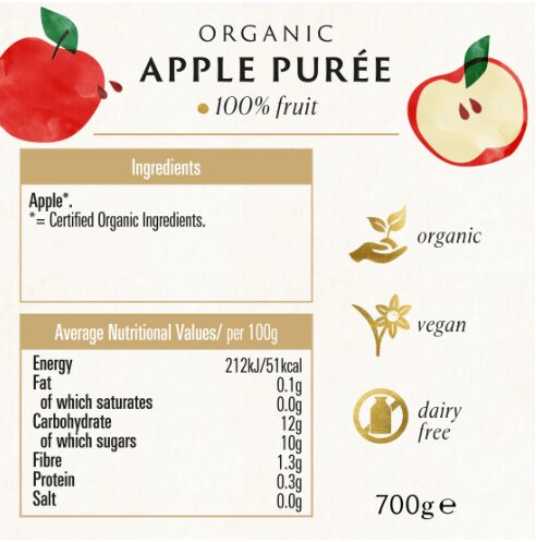 Biona Organic Apple Puree contains no added sugar, just 100% certified organic apples. Smooth and velvety in taste and texture, our freshly farmed apples are naturally sweet and free from any harmful pesticides, ensuring you receive all of their bountiful benefits. Apple Puree makes a delicious addition to breakfast, spooned on top of granola, yoghurt or chia puddings. You can also add it to smoothies or desserts and it works wonderfully in the baking of muffins and cakes.