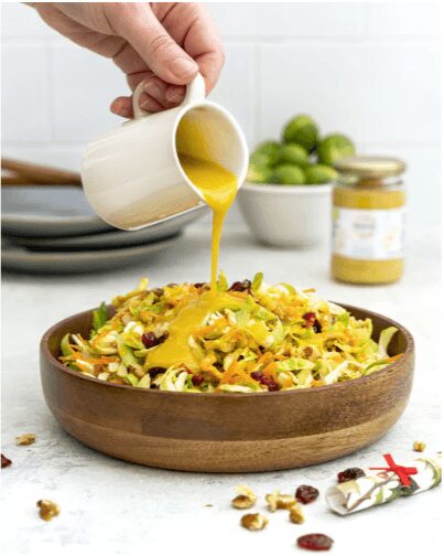 Spirit Vinegar*, Water, Mustard Seeds* (Yellow) (27%), Sea Salt, Agave Syrup*, Turmeric*, Fennel*, Coriander Seeds