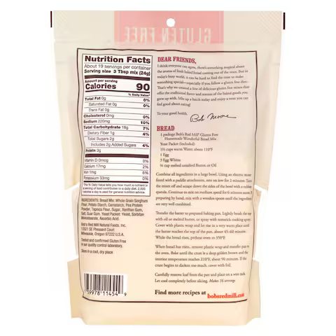 Homemade Wonderful Bread Mix is easily made by hand. The bread can also be made dairy free. This mix is especially designed for those sensitive to gluten, but enjoyed by everyone. This moist, flavorful bread is ideal for sandwiches, toast, bread crumbs, croutons, and other dishes that start with a basic loaf of bread. Contains whole grain sorghum flour, potato starch, cornstarch, pea protein powder, tapioca flour, sugar, xanthan gum, sea salt, guar gum and a yeast packet. Makes one 1-1/2 lb. loaf.