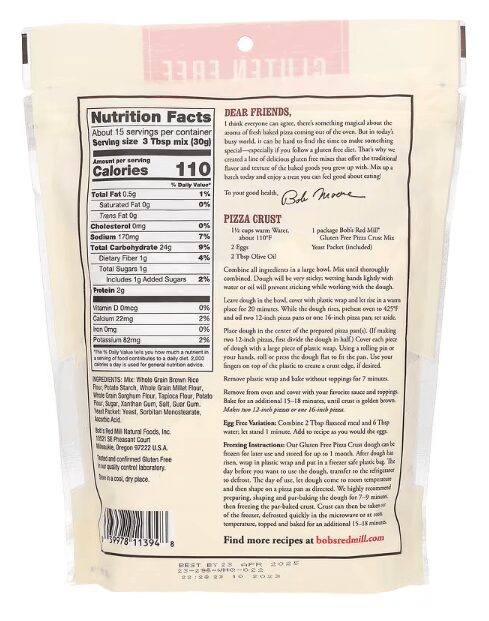 Bob’s Red Mill Organic Gluten Free Pizza Crust Mix – 16oz