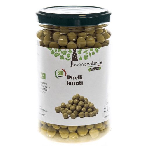 The buononaturale Boiled peas are grown and produced according to organic standards in Italy. Our Italian peas are boiled and preserved with the addition of sea salt. Peas are a source of folic acid, vitamins, and minerals. Peas lend themselves to many different uses in the kitchen: use them to make hearty soups, colorful pasta dishes, vegetarian meatballs and pies, or simple side dishes. The buononaturale peas come in recyclable glass jars.