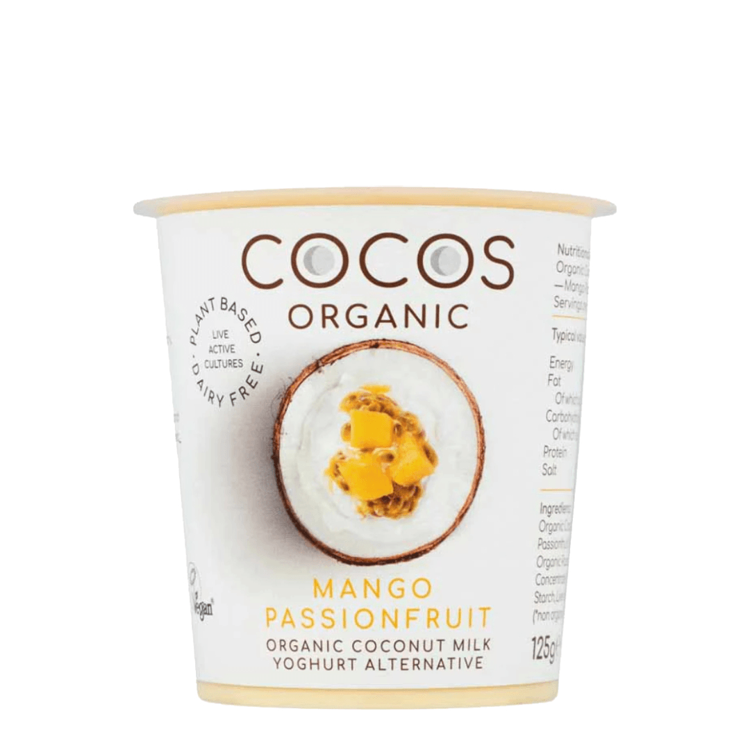 Make your breakfast plant-powered, with COCOS’ large pot of organic Mango & Passionfruit Coconut Milk Yogurt Alternative. Whether dolloped over fresh fruit, sprinkled with nuts and seeds, layered with crunchy granola or simply eaten by the spoonful, this creamy, coconut-based yogurt alternative is naturally flavoured with juicy mango and passionfruit purée to bring a tropical touch to your breakfast or dessert. Naturally rich and creamy, it’s also packed with live active cultures.