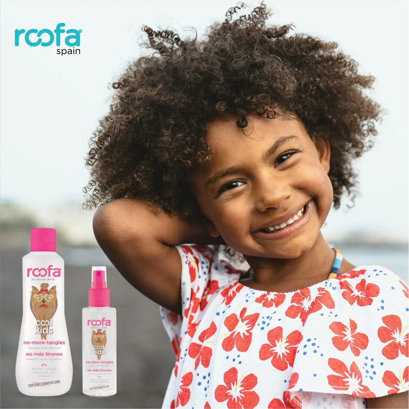Roofa cool kids no more tangles spray is a detangling, rinse-free spray enriched with aloe vera and a soft conditioning agent. Roofa no-more-tangles spray helps undo knots and tangles, making combing easier. It hydrates and protects the hair, giving it a soft and silky appearance.