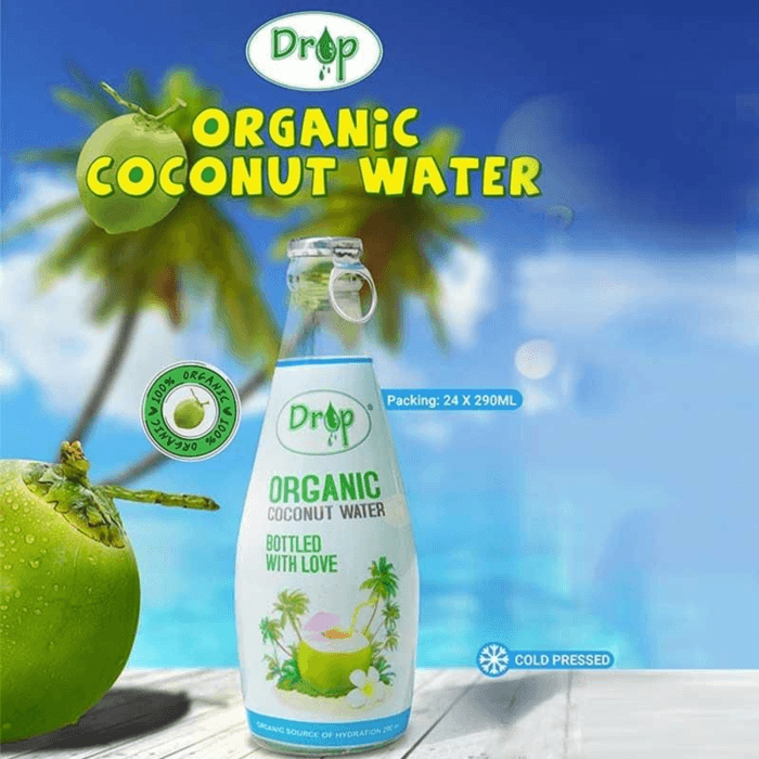 Drop Coconut water is an organic healthy beverage, sourced directly from farmers in Vietnam.