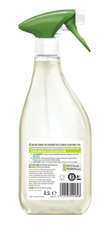 With a fresh scent of Lemongrass & Orange this Multi Surface Cleaner from Ecover unleashes the natural power of palm-oil free cleaning ingredients to effectively cut through grease and grime. Suitable for all surfaces and safe around food, this eco-friendly Multi-Surface Cleaner has been developed using Ecover’s pioneering Ecosurfactant Formula. With quick and complete biodegradability, it is designed to have minimum impact upon aquatic life.