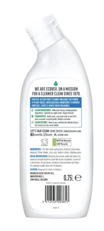 Give the toilet bowl a thorough clean without those eye-watering chemical smells. With its multi-action decalcifying agent, once round the rim with Ecover Toilet Cleaner with a scrub keeps your loo clean and fresh.