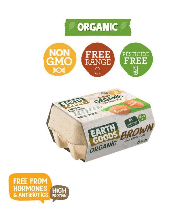 Earth Goods’ premium organic brown eggs are fresh from dedicated family farms, sourced from free-range, organically fed-hens. They are high in protein, nutritious, favourful, free from hormones and antibiotics, a wholesome and natural choice with an exceptional taste.