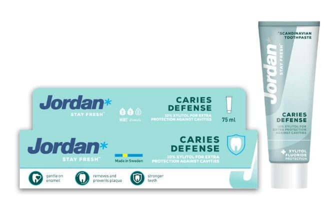 Jordan Cavity Defense is a toothpaste with a mild, yet fresh taste. This toothpaste differentiate from the others by containing a much higher level of xylitol (9,9%). The combination of fluoride and xylitol gives you stronger teeth and better remineralisation compared to fluoride alone – all to make this a superior anti-cavity protection. The toothpaste is gentle on the enamel.