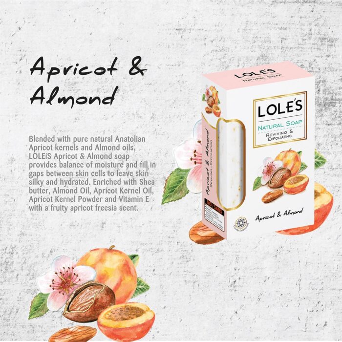 LOLE’S Luxury Pure Natural Soap, Apricot & Almond Beauty Soap Bar, Reviving & Exfoliating Face Body Care, Vitamin E, SLS-Free, Soft Fresh Touch, 100% Vegetable, No Animal Fat