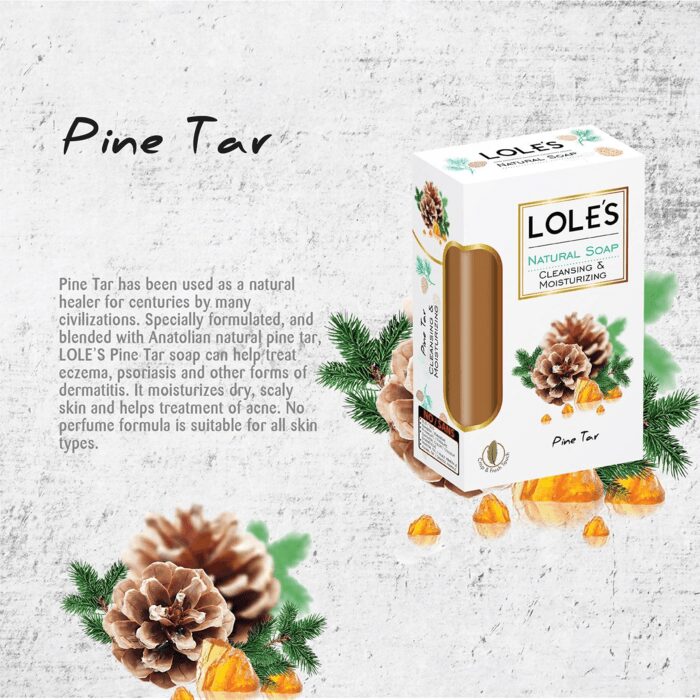 ♦NATURAL SOAP BAR WITH PINE TAR: Pine Tar has been used as a natural healer for centuries by many civilizations. Specially formulated, and blended with Anatolian natural pine tar, LOLE’S Pine Tar soap can help treat eczema, psoriasis and other forms of dermatitis.