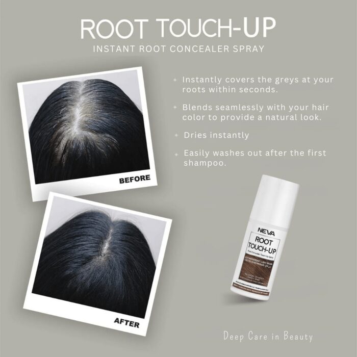 NEVA ROOT TOUCH-UP Instant Concealer Spray, Covers Gray Hair Instantly, Fast-Drying Formula, Long-Lasting, Lightweight, Easy to Clean – 75ml (Dark Brown)