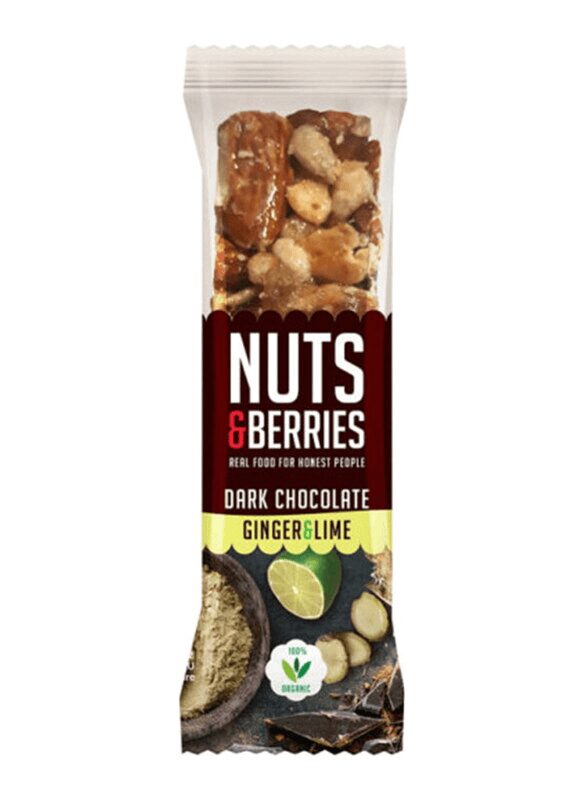 Almonds, Cashew nuts, Dark chocolate (12.5%) (cane sugar, cocoa butter, cocoa mass, vanilla powder), agave syrup, rice syrup, puffed rice, sunflower seeds, ginger (5%), dried limes (0.5%)