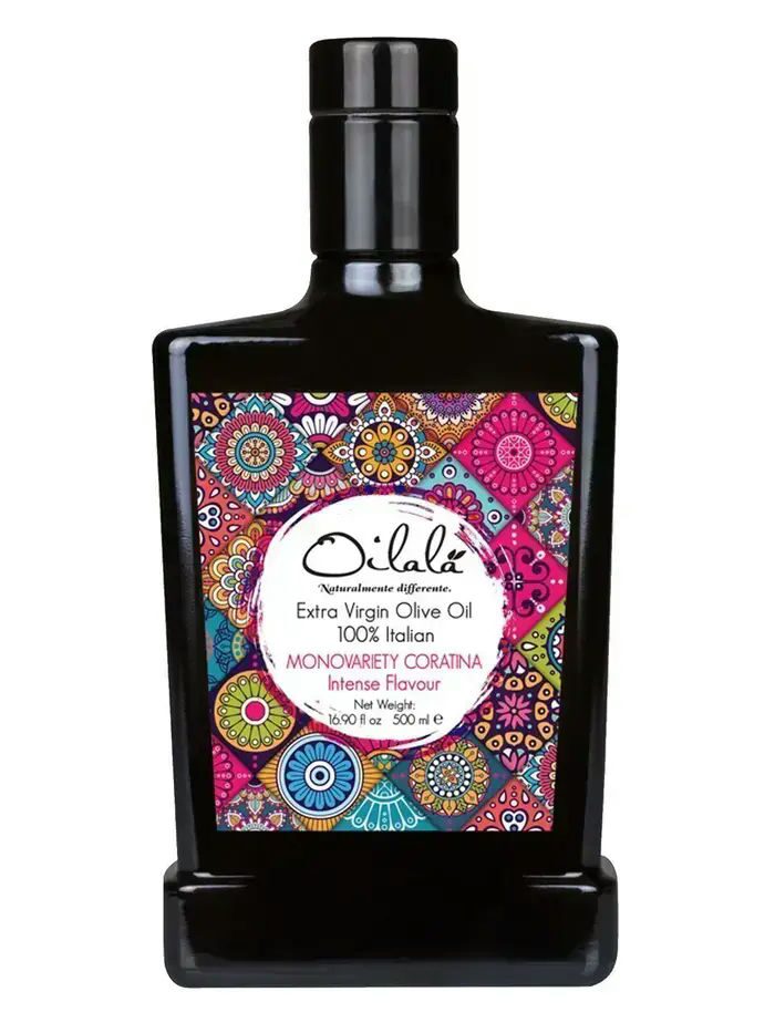 The Coratina olive it’s the most ancient variety of the Apulia region. Cultivated since Millennia, our Monovariety extra virgin olive oil has a strong character typical of the Coratina Olive, with an intense fruity. This olive oil is produced by 100 % Coratina olive harvested between October and November of each year. Oilalà ensures that the olives are brought to mill within 4 hours from olive picking with a cold pressing (25°) to guarantee the freshness of products for maintaining their organoleptic properties.