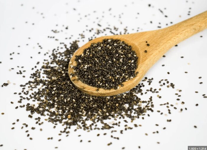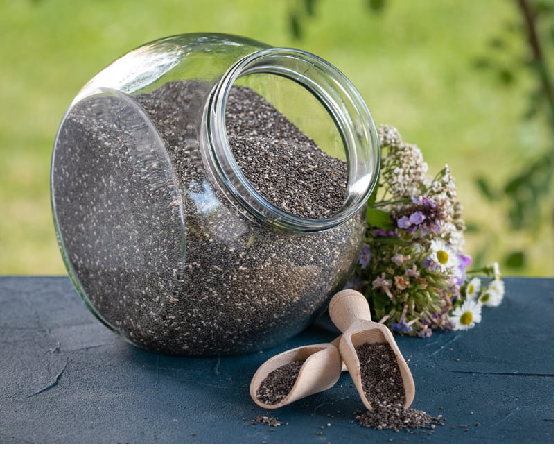 Tiny but powerful chia seeds packed with nutrients.