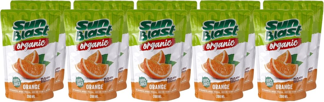 Sunblast is a product line for juice products owned by Organic Foods and cafe company who opened their first store in Satwa, Dubai in 2004. They manufacture organic, fresh and biodynamic food, skincare, supplements, baby items, and household cleaning products.