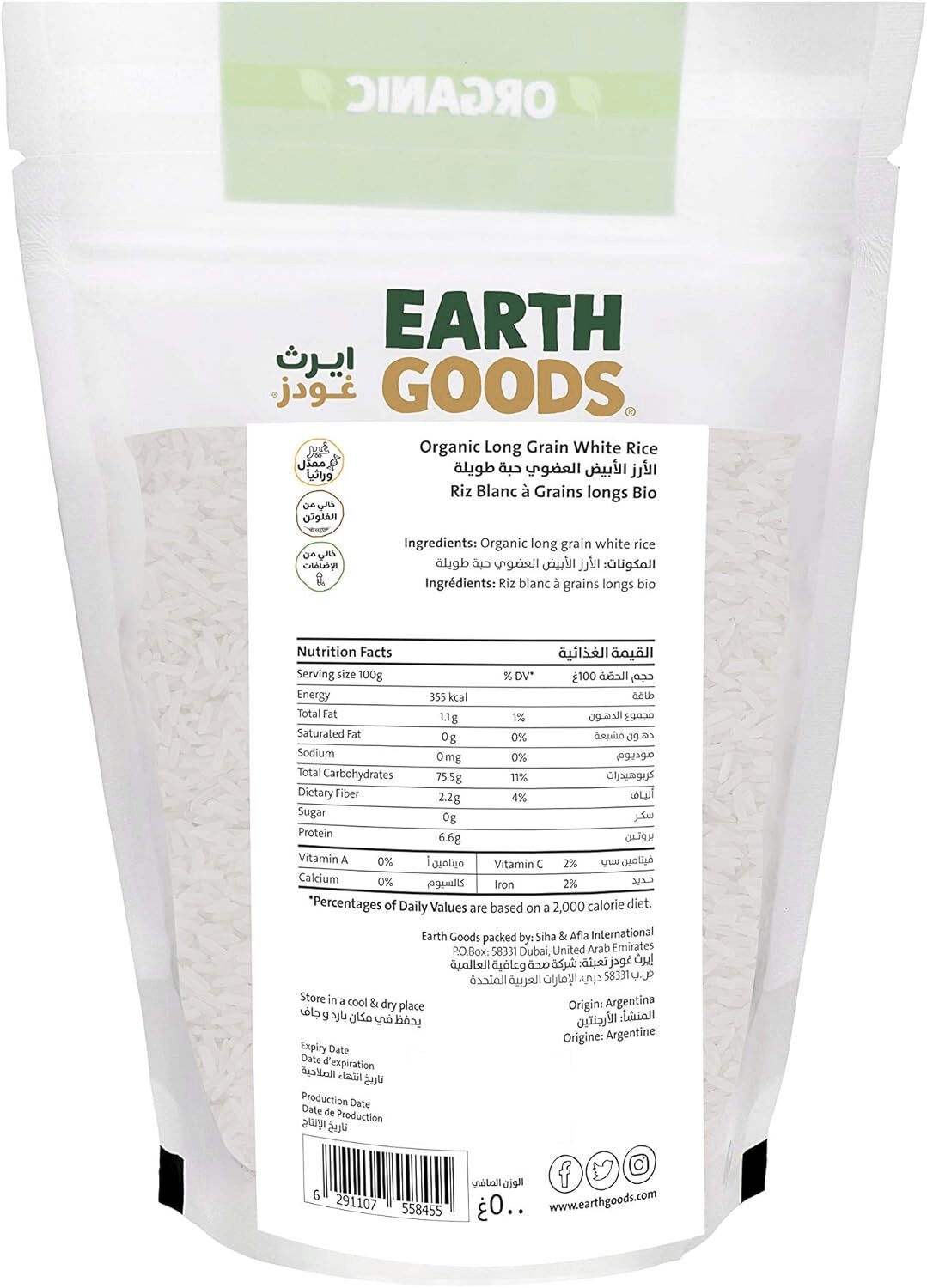 Earth Goods Organic Long Grain White Rice, Non-Gmo, Gluten-Free, No Additives 500G