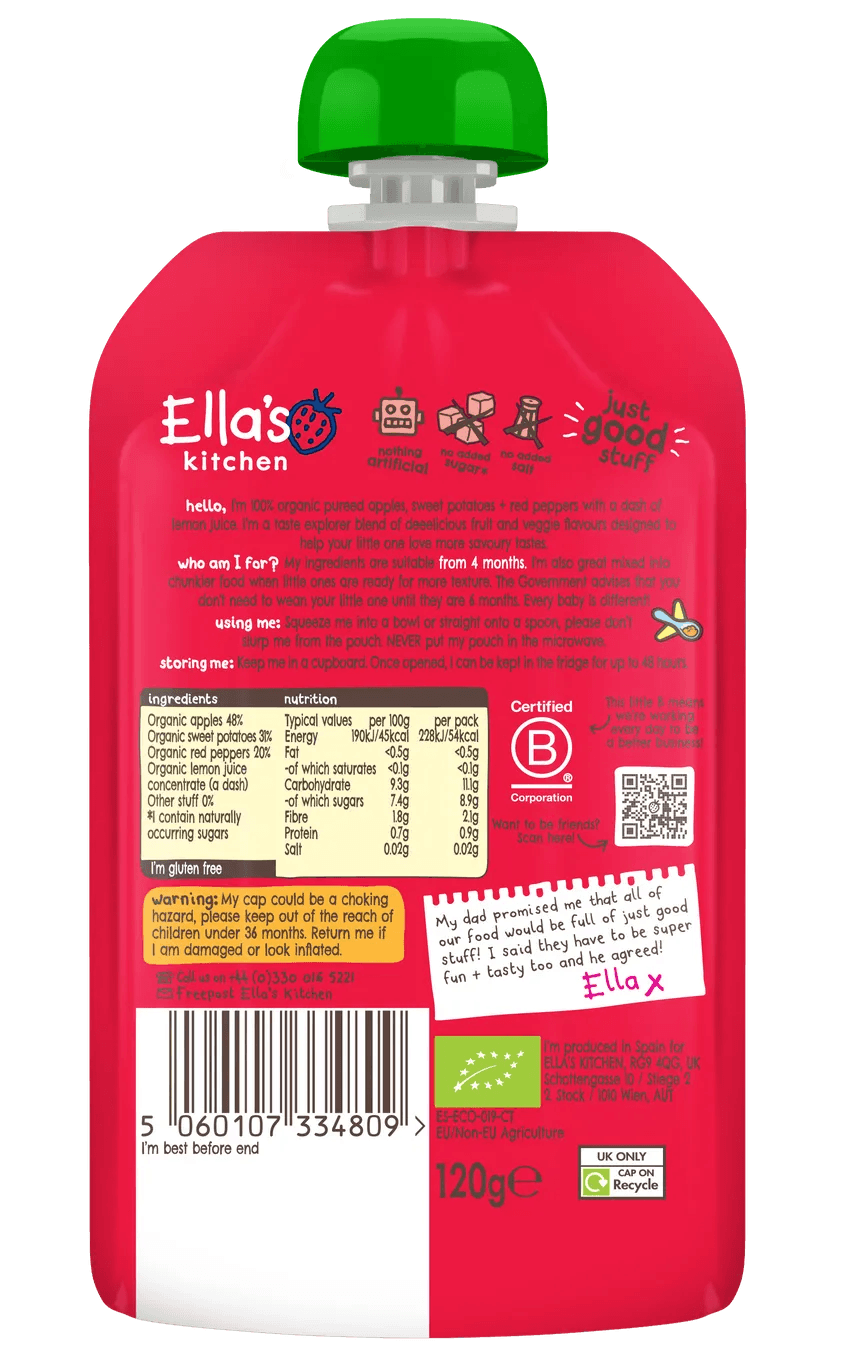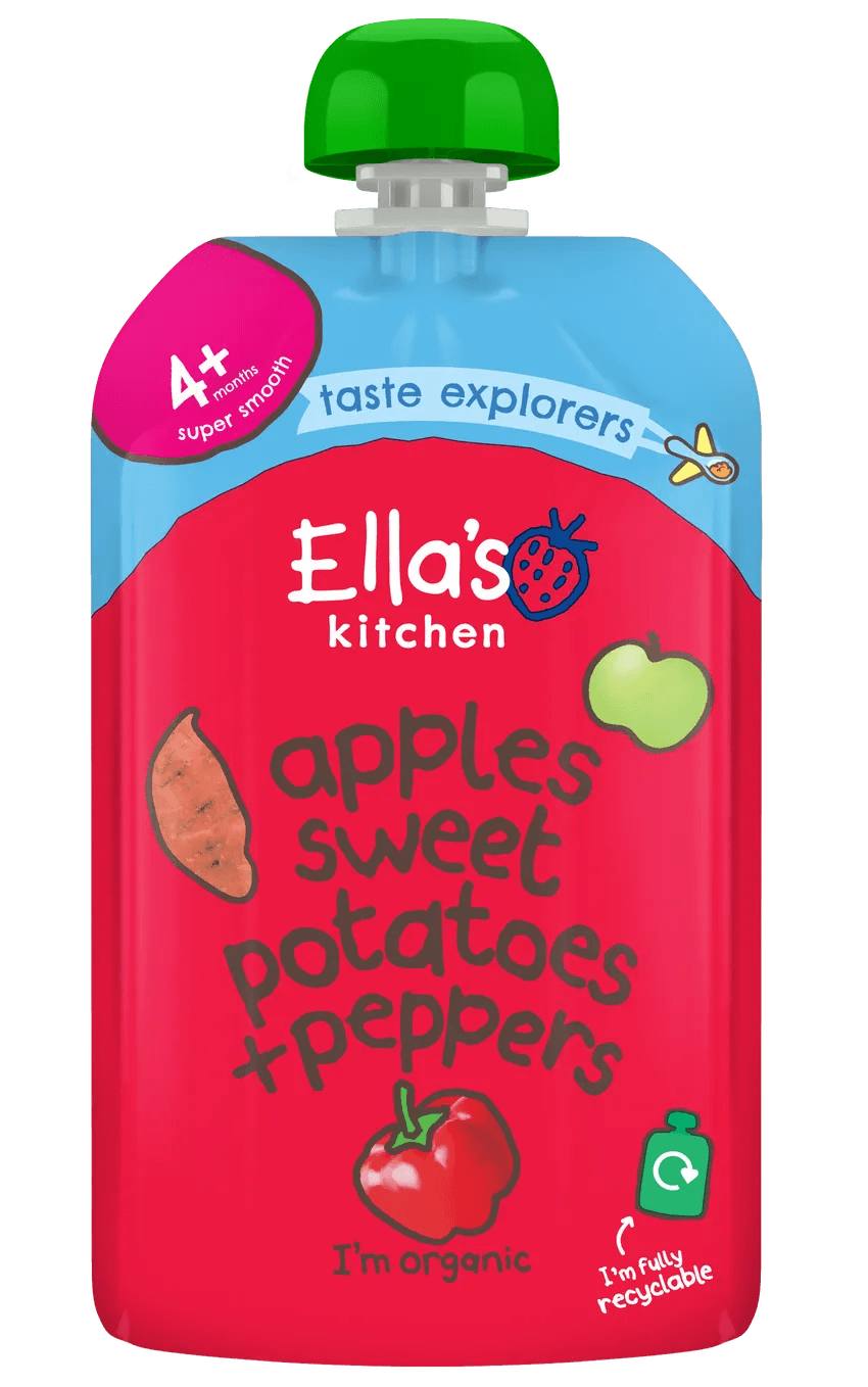 Organic Red Peppers Sweet Potatoes + Apples 7 X 120G