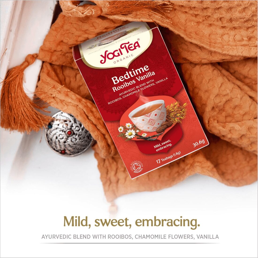 Yogi Bedtime Rooibos Vanilla is an Ayurvedic herbal and spice tea that is perfect for anyone looking for a sweet end to the day. Enjoy the soft embrace of gentle rooibos and fragrant vanilla.