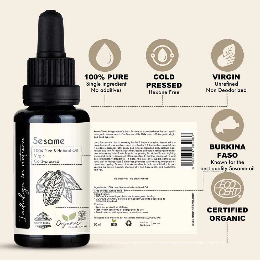Our Sesame oil is 100% pure, 100% organic, virgin, and cold-pressed. Our cold-pressed extraction method, with no further processing or refining