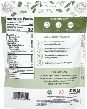 – BETTER FOR YOU! Organic Traditions Amla Berry Powder is non-GMO, plant based and certified Organic