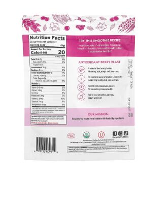 - A blend of organic blueberry powder, organic acai berry powder, organic freeze dried maqui berry powder and organic camu camu berry powder.