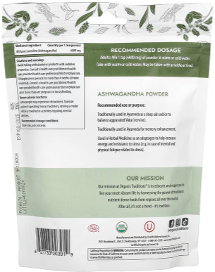 Organic Traditions Ashwagandha Root Powder is made from 100% of certified organic ashwagandha root powder. Ashwagandha is also known as Withania. It has been extensively used as an herbal tonic for many centuries in traditional Ayurvedic medicine. It is a great super herb for overall adrenal support.