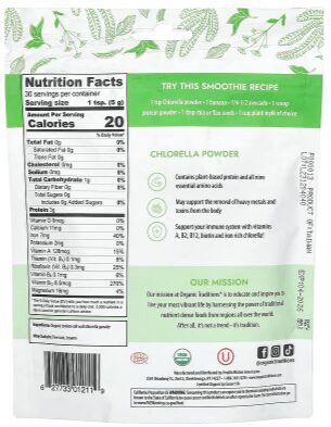 • Organic chlorella powder is perfect for smoothies, smoothie bowls, juices and water.