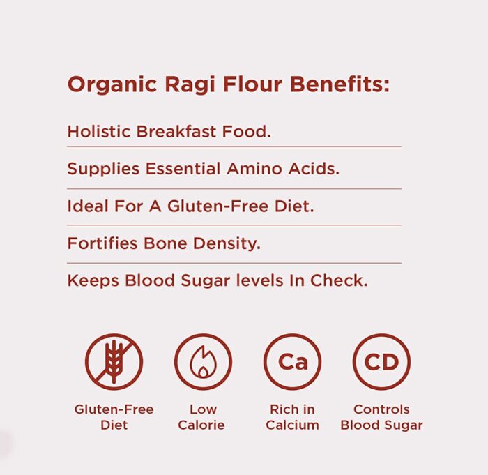 Pure & Sure Organic Ragi Flour also known as finger millet flour is high in protein, dietary fiber, and enhance iron bioavailability compared to plain ragi flour. It is a rich source of fiber.