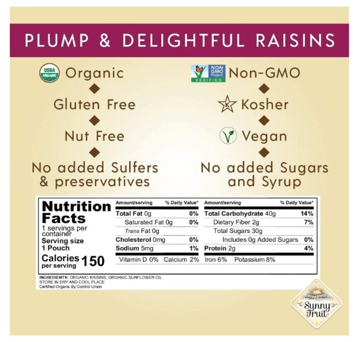 Organic Raisins, Organic Sunflower oil