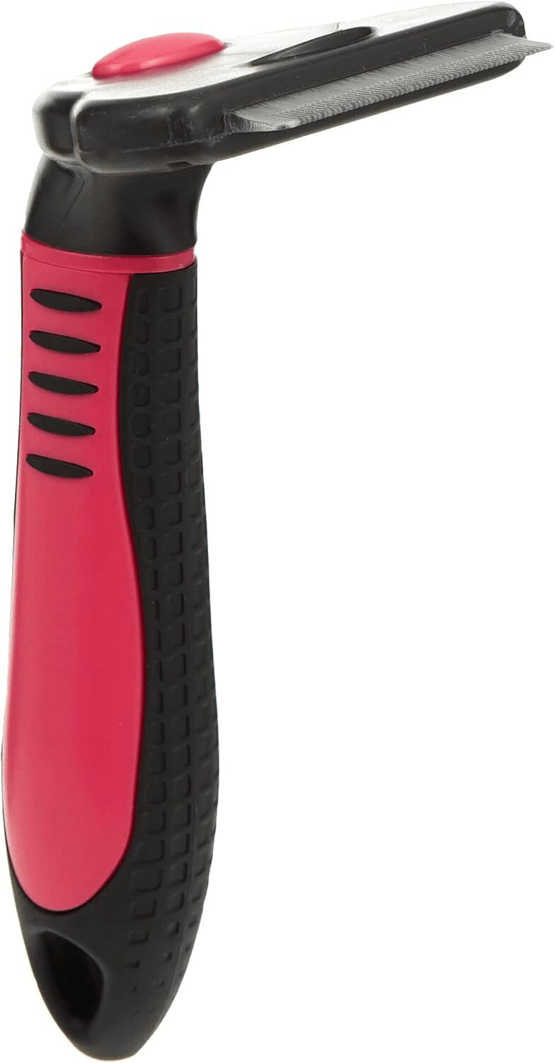 The blade is made of stainless steel and is replaced at the handle with a simple button lock. The wool knife has a plastic handle with a non-slip rubber grip.
