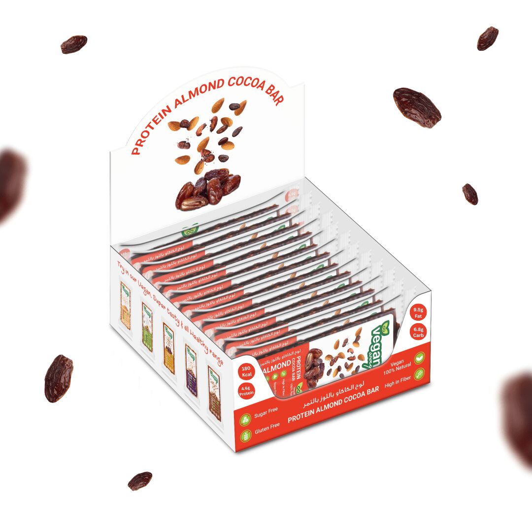 Vegan Way Protein Bars with Dates, Almond and Cocoa | 15g Protein, 2g Sugar, 14g Fiber | Keto-Friendly