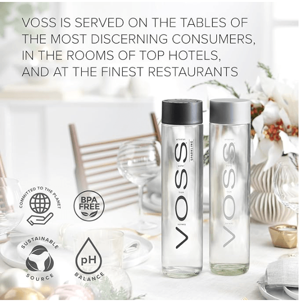 PREMIUM MINERAL WATER – Originating from a pristine aquifer deep beneath the earth of Norway, VOSS mineral water is naturally filtered through layers of rock and sand to provide a pure, crisp taste