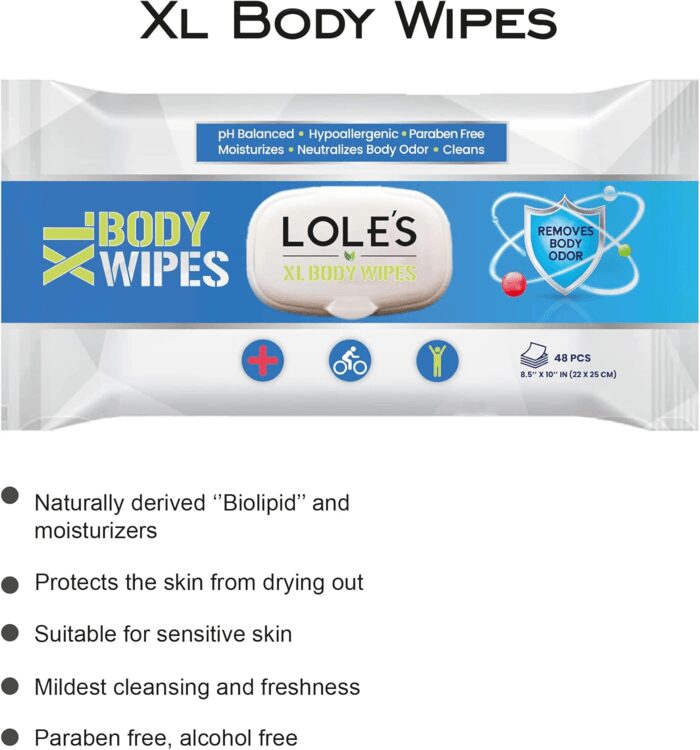 LOLE’S XL Body Wipes – Cleansing, Hydrating & Rinse Free – Extra Large Soft & Wet Body Wipes for Adults, Daily Use & Immobile – No Harsh Chemicals, Parabens Free