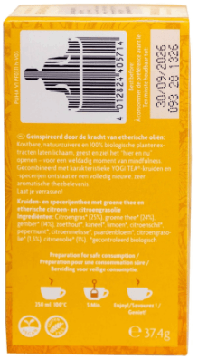 Lemon grass*, Green tea*, Ginger*, Liquorice*, Cinnamon*, Lime*, Lemon peel*, Peppermint*, Lemon balm*, Dandelion*, Lemon grass oil*, Lemon oil*